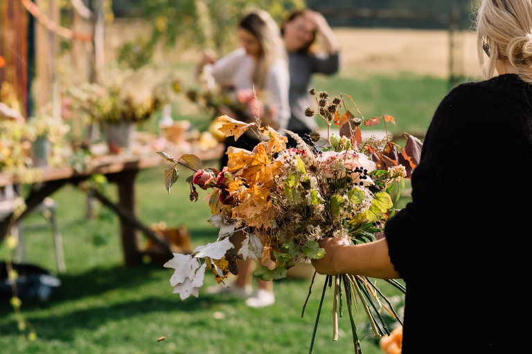If you know anything about us, then you know we could not stay away from this experience. One sunny autumn day, golden fields and berry shrubs, our favourite venue, mouthwatering food and, above all, FLOWERS! We joined Laura and Andreea of Atelier Bloom Bloom and their attendees for the Octobria floral retreat, at The Wedding House. And then we let ourselves immersed into wonderful colours, bird chirping, wind and sun on our faces and a lot of fun watching this group of talented ladies creating beauty.